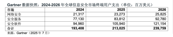 8月6日消息,Gartner预测,2025年全球终端用户信息安全支出将达到2130亿美元,较2024年的1930亿美元有所增长;2026年将达到2400亿美元,较2025年同比增长12.5%。